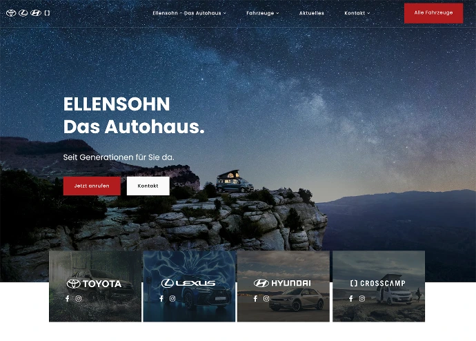 Relaunch der Webservices und Webkommunikation für das Autohaus Ellensohn mit fünf Standorten in Vorarlberg und Tirol.